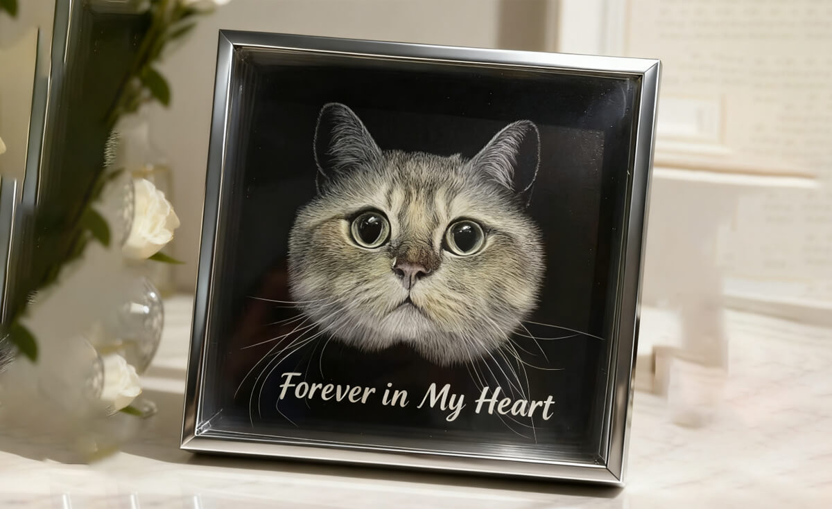 Add significant dates, a quote, or a halo to your beloved pet's portrait.